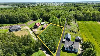 Działka leśna 33,337 m2 o wymiarach 82m (36/6) x 593m, zalesiona (22-letni las). Drzewostan: ok. 70% sosna oraz olcha, ...