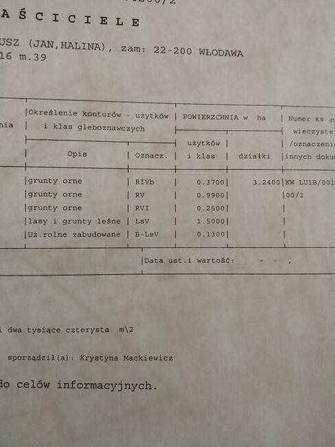10Sprzedam ziemie rolną w miejscowości Szostaki gmina KODEŃ powiat BIALSKI woj.Lubelskie Działka 3,26 ha.w jednym ...